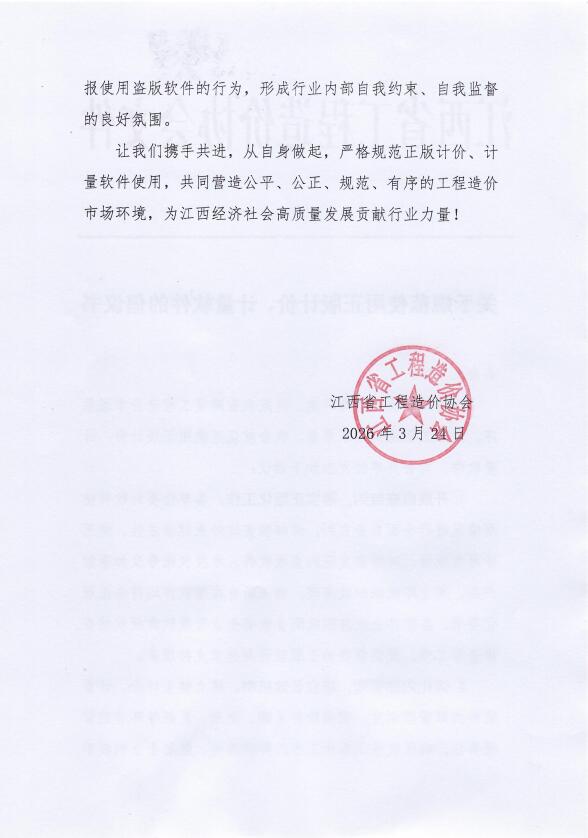江西省工程造价协会发布关于关于规范使用正版计价、计量软件的倡议书